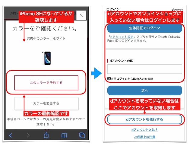 ※dアカウントは予約・購入ページの途中でも取得できますが、あらかじめ取っておくとスムーズに予約が完了します。